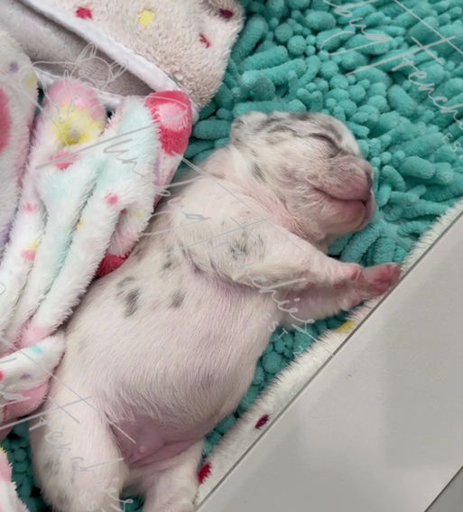 Cannoli, the shinning star of this litter! Cannoli has a sweet disposition and is content when being held. She has amazing structure, wonderful temperament, and the combined coat colors and patterns that make her very special and unique. She's small and compact with no tail. Her crystal blue eyes and white eyelashes are a few more features contributing to this unique and rare beauty. I couldn't be more proud of her, she is perfect in all aspects!